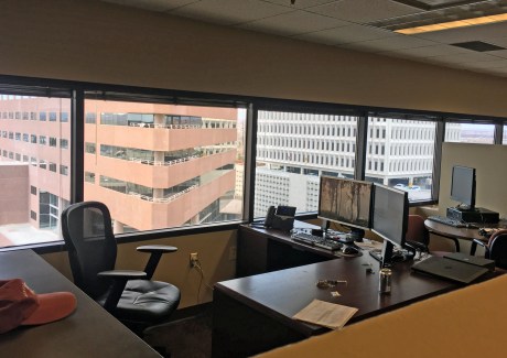 Just a small open cube when I actually go into work. Since I am part time I don’t have a permanent workspace. When I work from home I sit at the kitchen counter.