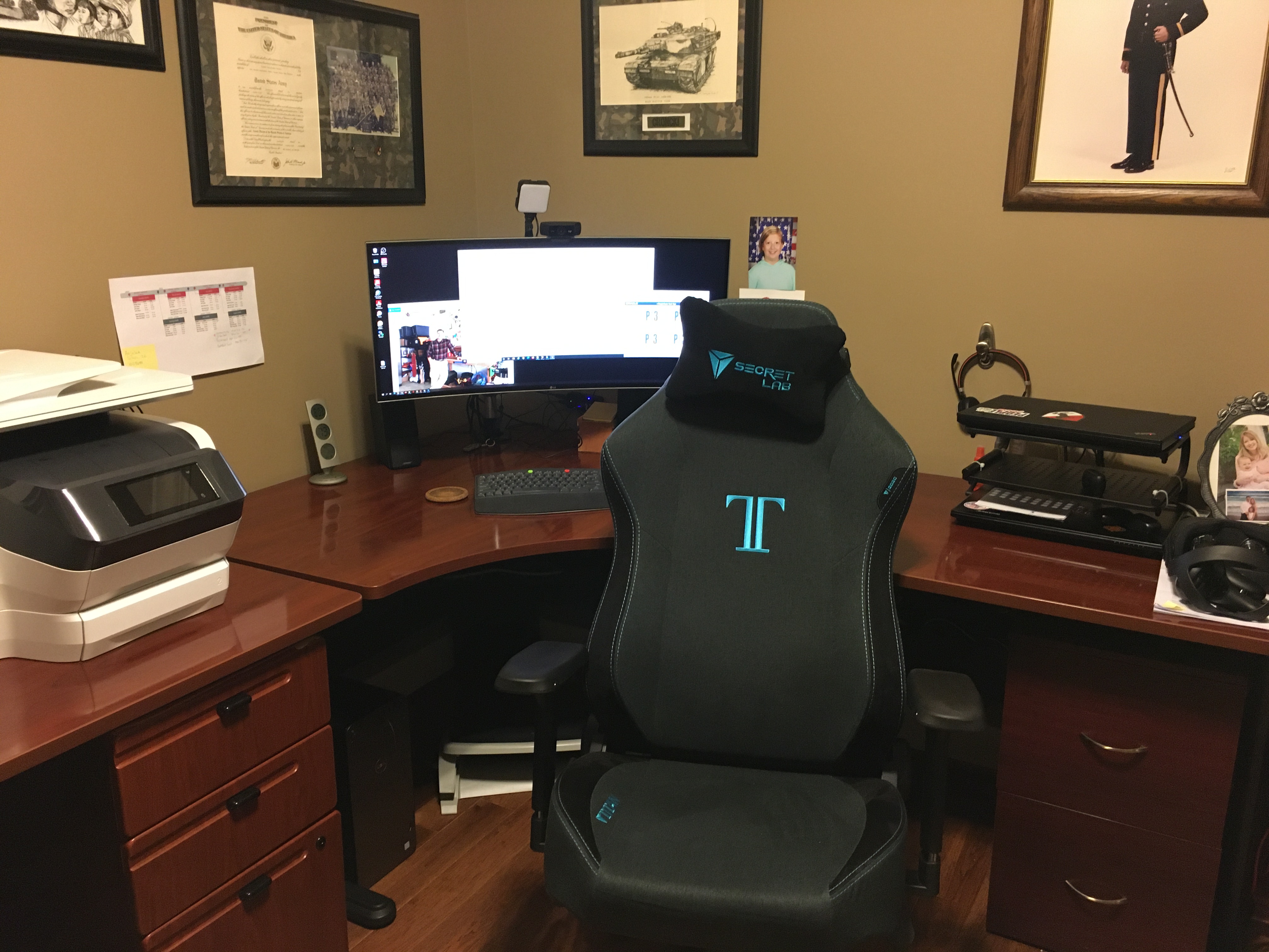 Comfortable. I’ve been working from home at least a few days a week for several years before COVID. We have a main floor room setup as an office for both me and my wife. I think long hours working from home is worth a modest investment in my workspace to keep productive and healthy. My home office is usually better outfitted than the client sites.
