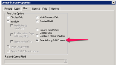 Previously people (myself included) have accomplished similar functionality – with varying levels of success – by inserting JavaScript onto the page. Now it’s natively built in to PeopleTools. A character counter can be activated on the properties on the Long Edit box control: