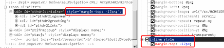 Although the top margin for the pthdr2container div is set to zero in CSS, because this is an inline style it’s overriding it – and hence hiding part of the header. We need to stop this override happening, either by removing the code or by use of the CSS !important directive.